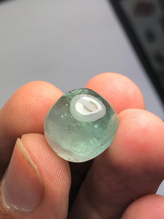 تورمالين عين القط الأزرق الأخضر، قبة مستديرة، 8.55 قيراط - حجر شفائي لتوازن الطاقة