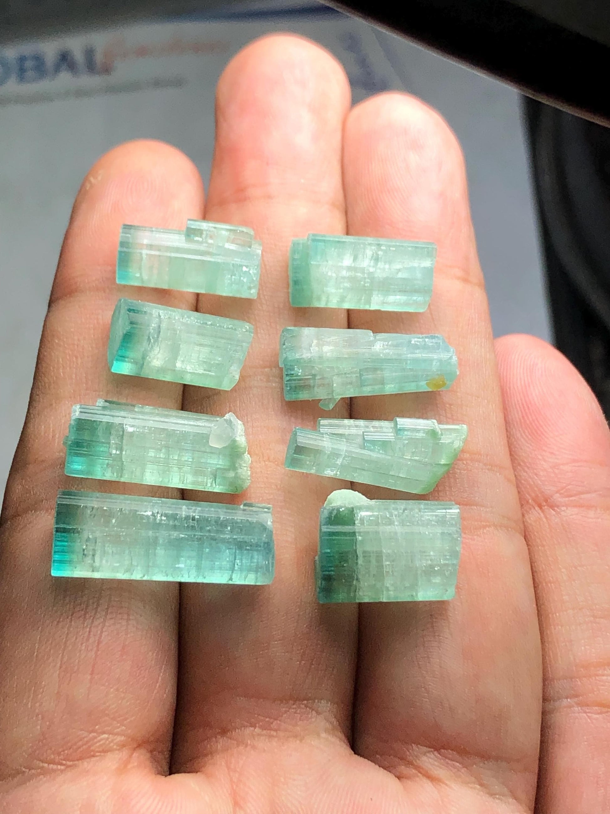 Bi colour tourmaline crystalWeight:75 ctssize:15mm to 21mm long