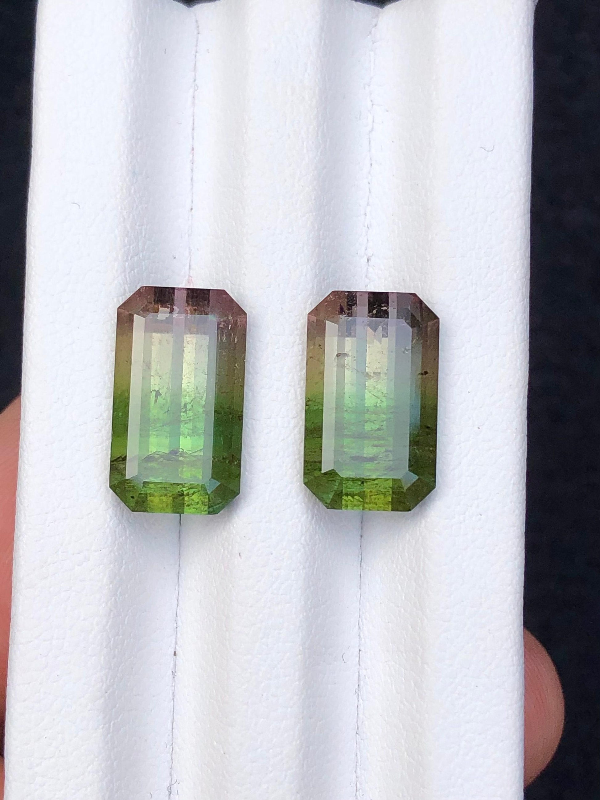 Bi colour Tourmaline Faceted Pair 14.60 ct - Matching Earrings Stones