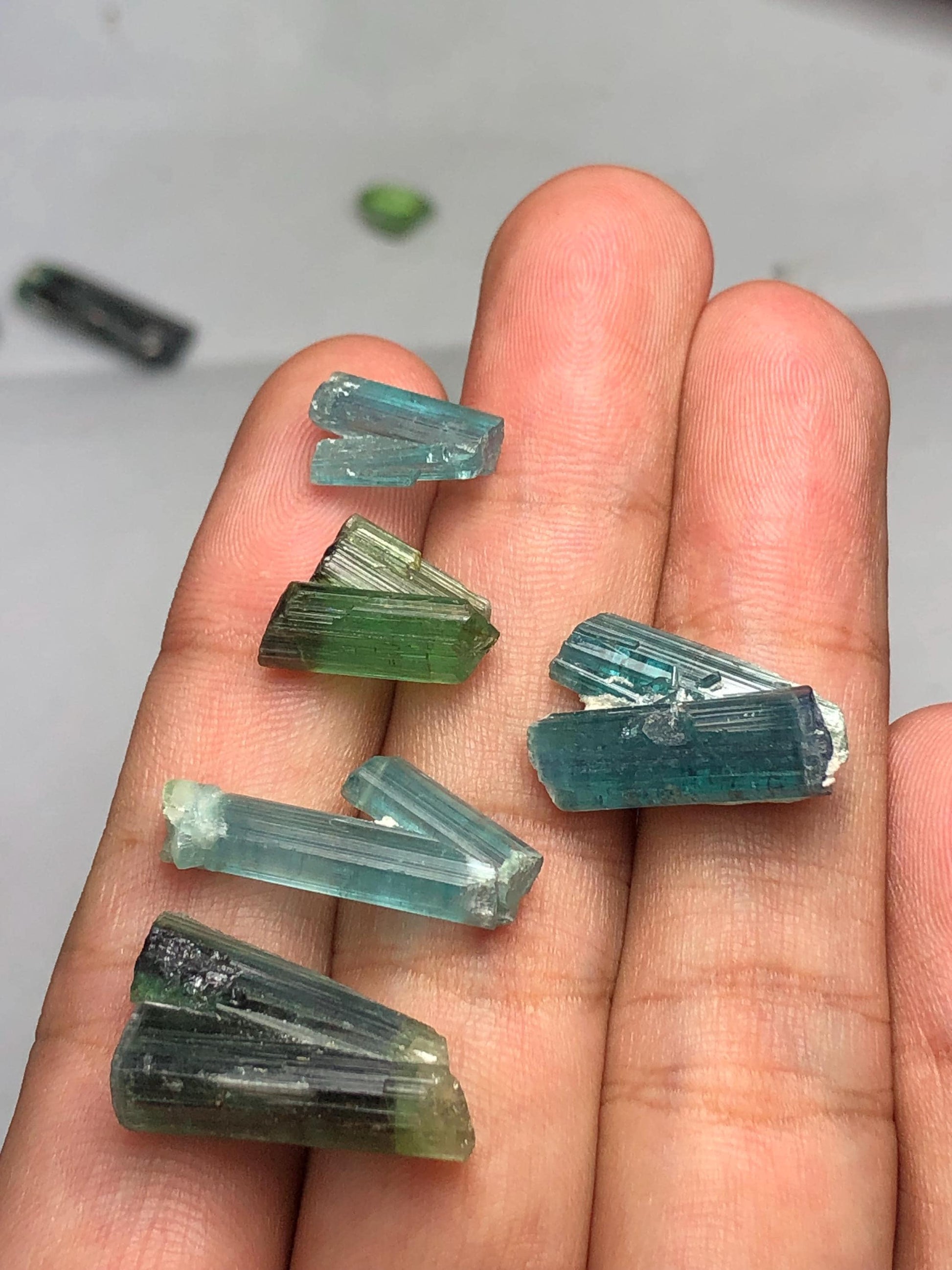 Blue Green Tourmaline Crystals 44 ct - Collector Mineral Specimen