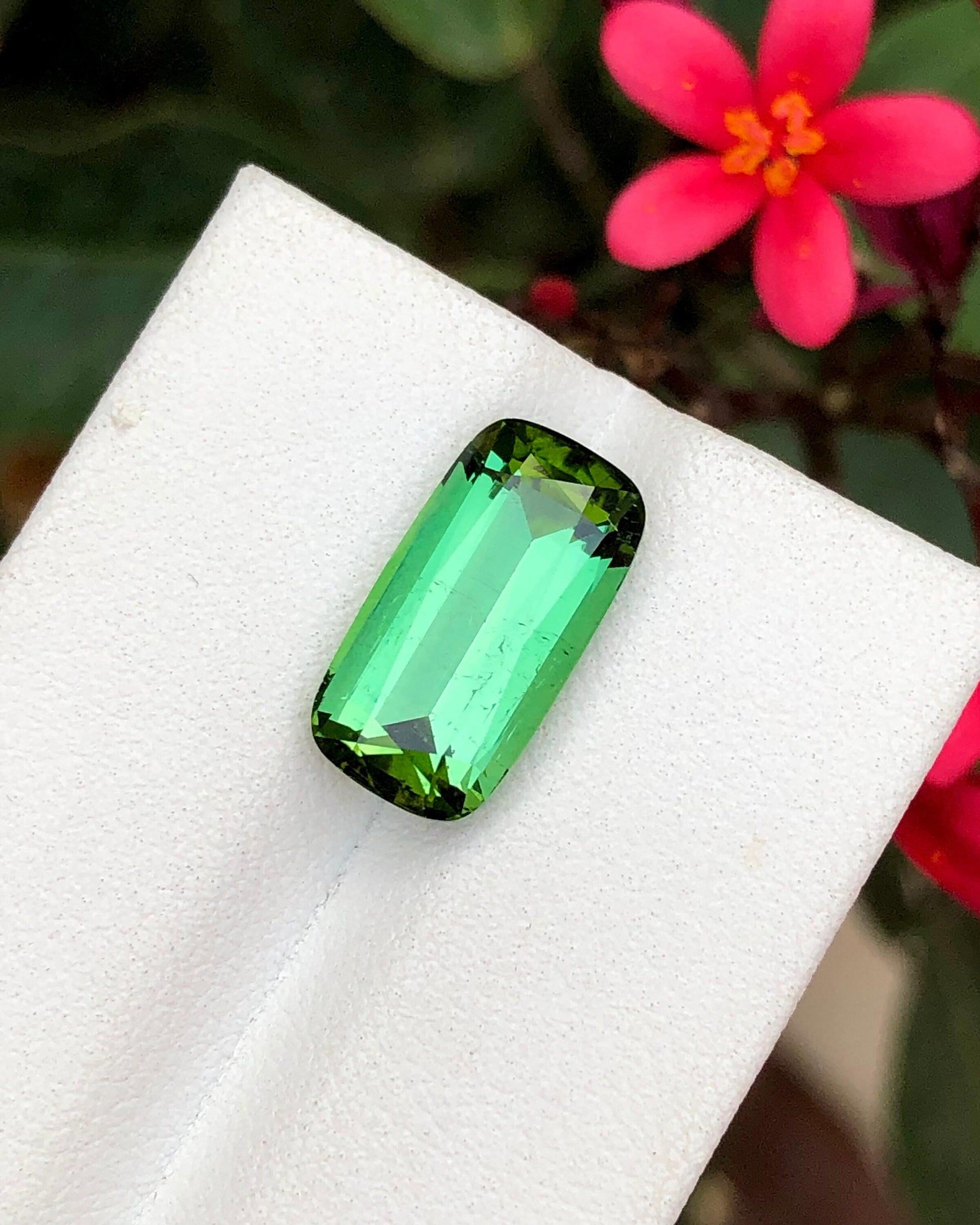5.85 carat gorgeous cushion cut green tourmaline origin Afghanistan