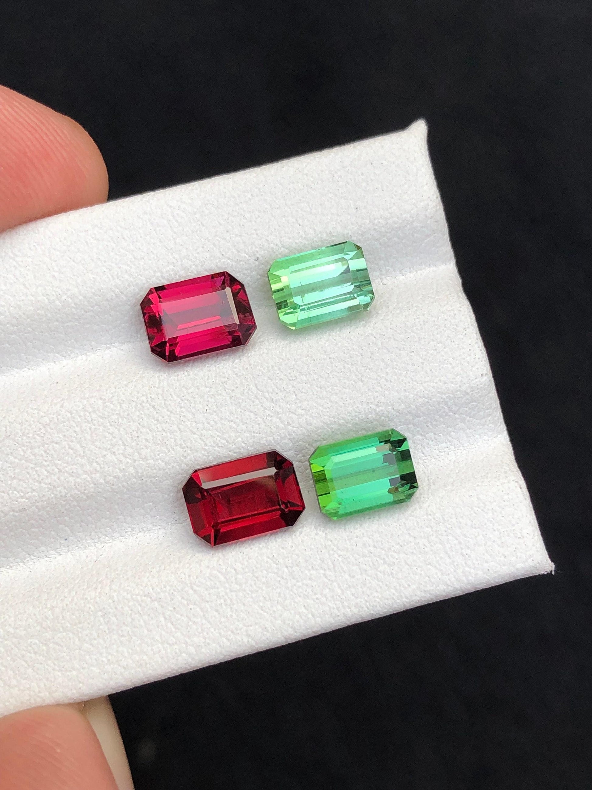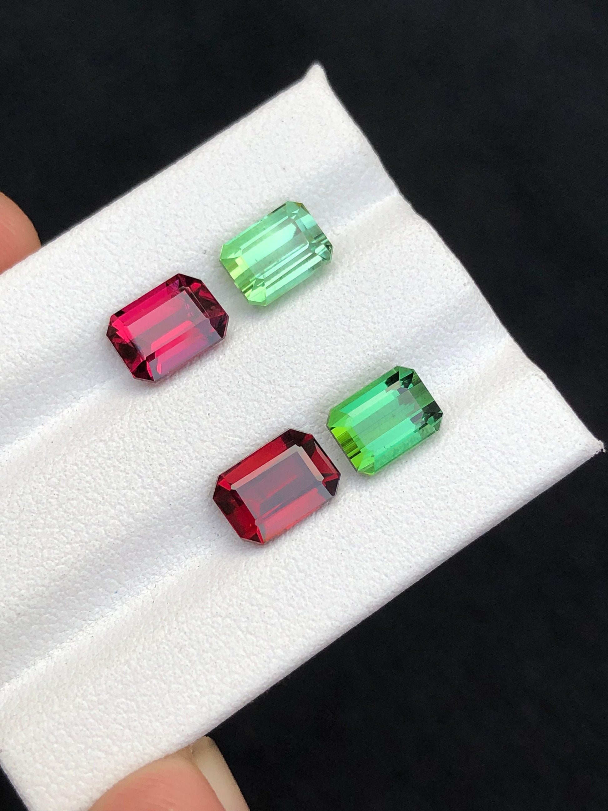 أزواج من التورمالين الأخضر والغرانيت الوردية (الرودوليت) تزن 6.50 قيراط.