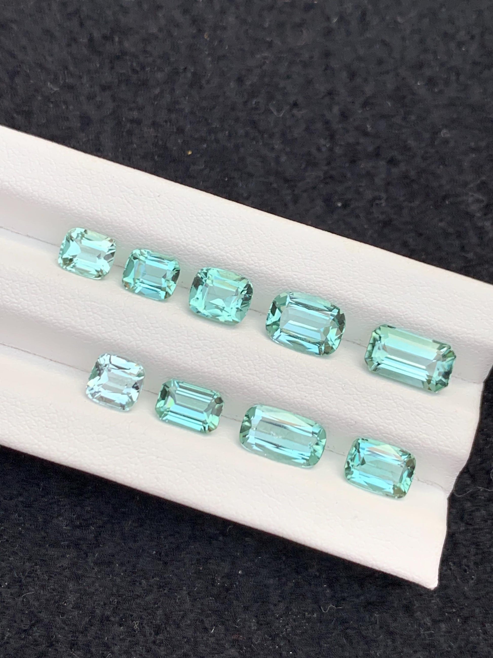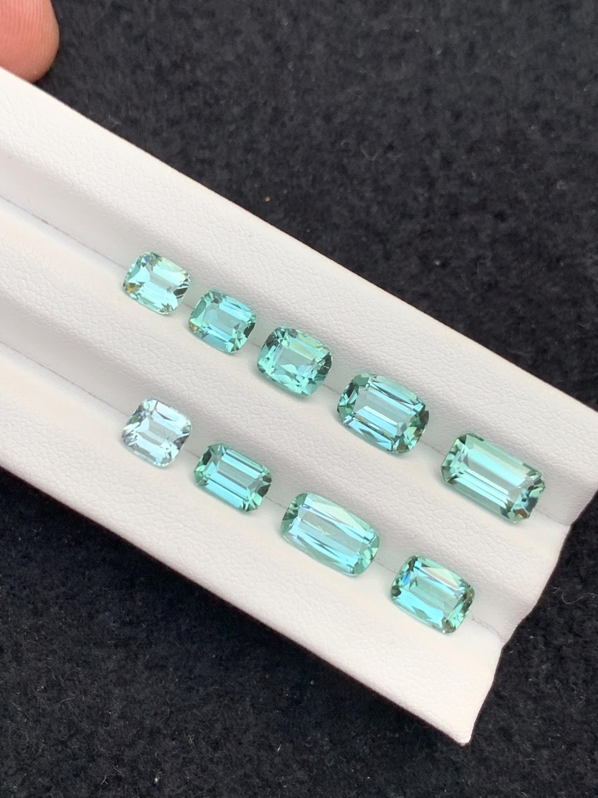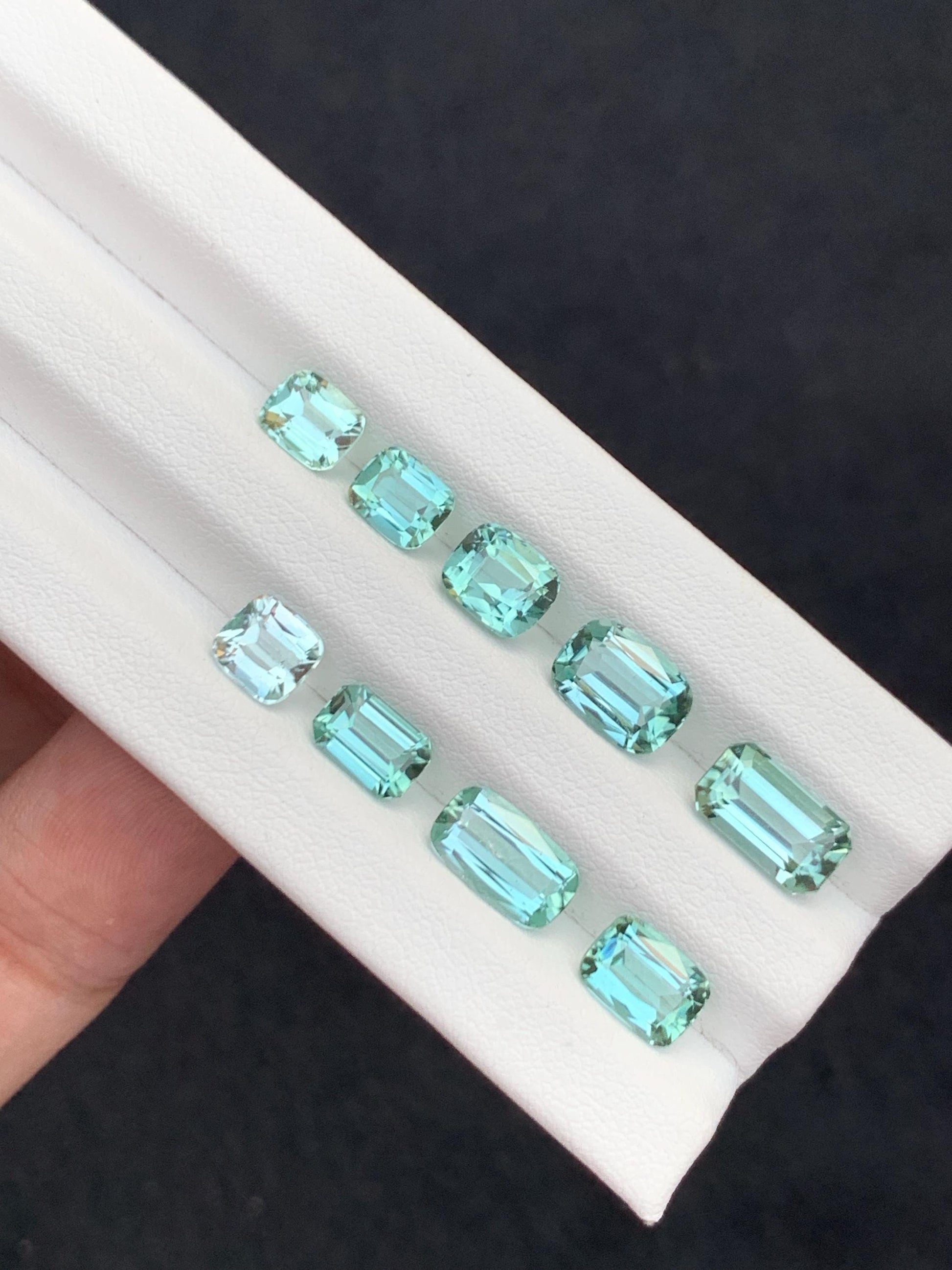 مجموعة من أحجار التورمالين ذات اللون الأخضر الفاتح (Seafoam Tourmaline) مصقولة، وزنها 12.20 قيراط – أحجار كريمة معتمدة لتصنيع المجوهرات.