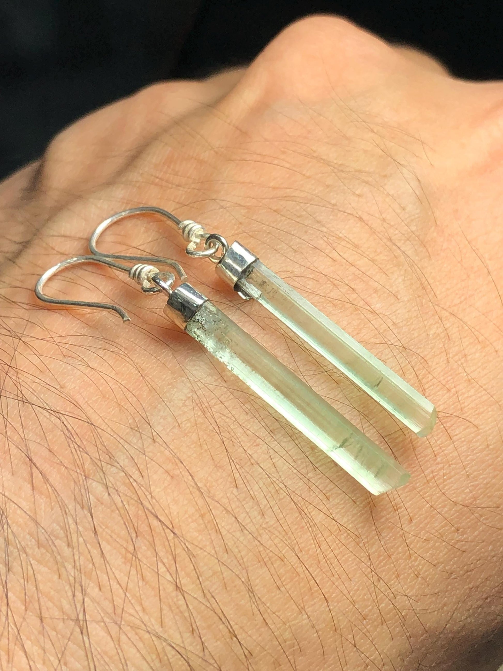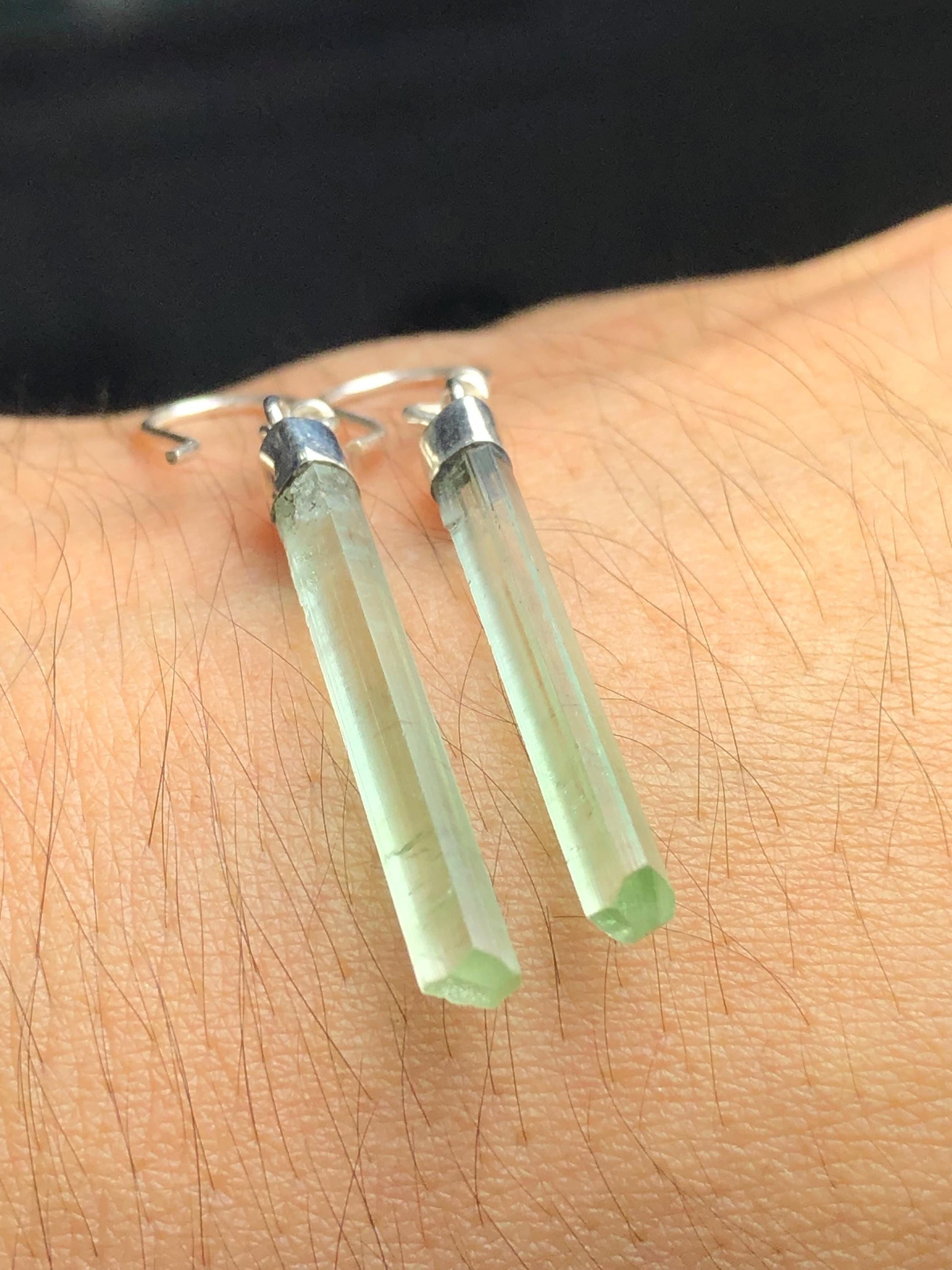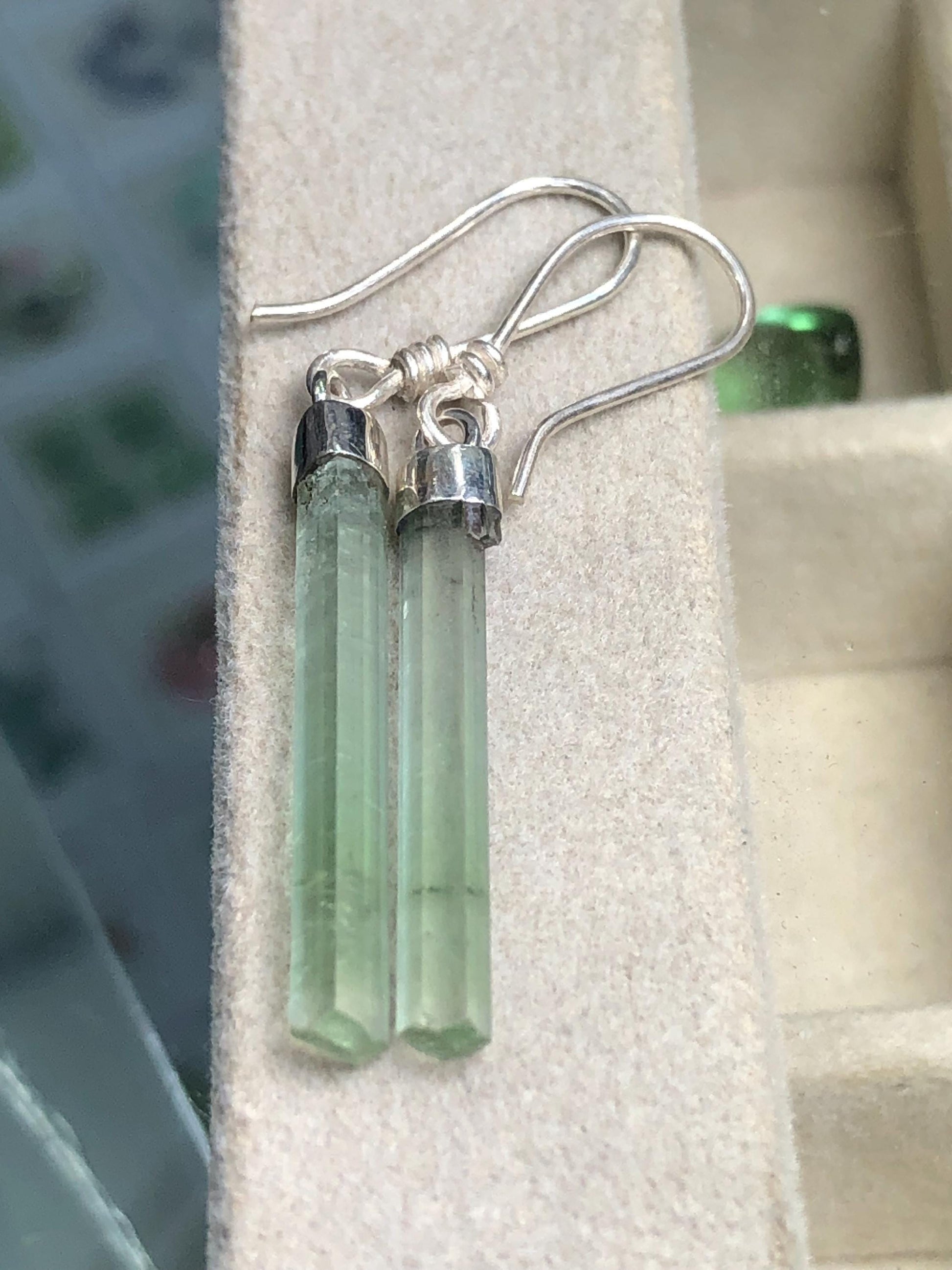 أقراط أذن من الفضة عيار 925 مع تورمالين أخضر نعناعي طبيعي. الوزن: 10 قيراط