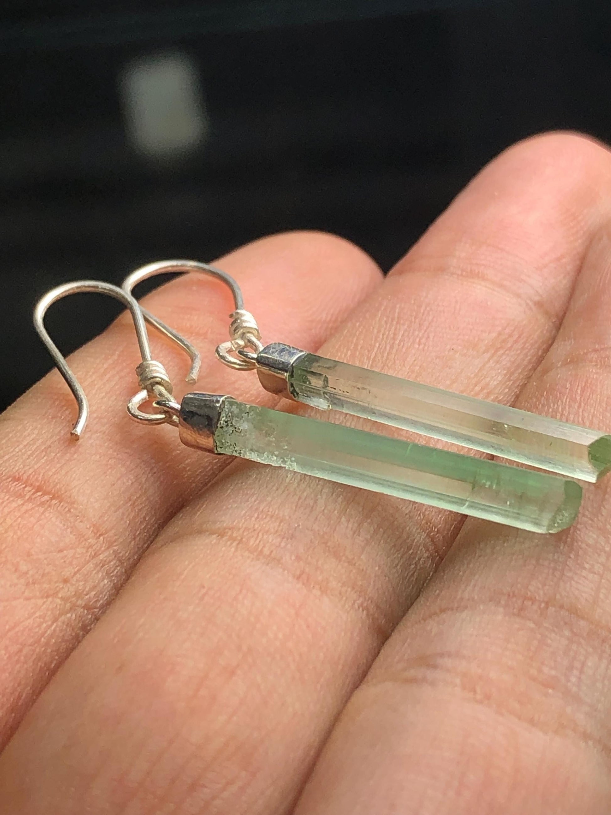 أقراط أذن من الكريستال التورمالين 10 قيراط - مجوهرات طبيعية من الفضة عيار 925