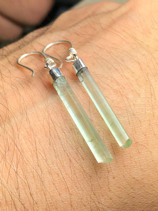 Tourmaline Crystal Earrings 10 ct - 925 Silver Natural Gem Jewelry