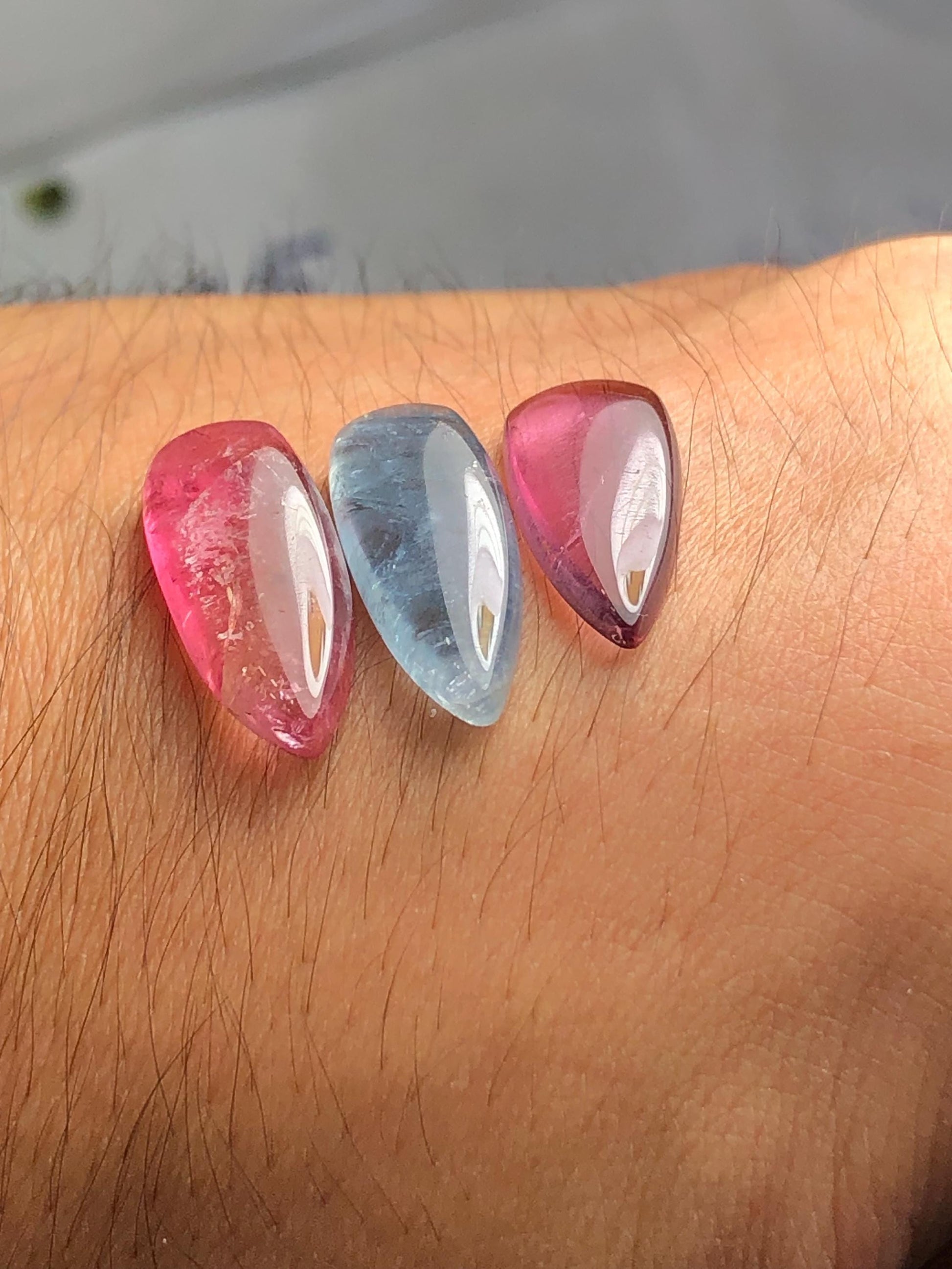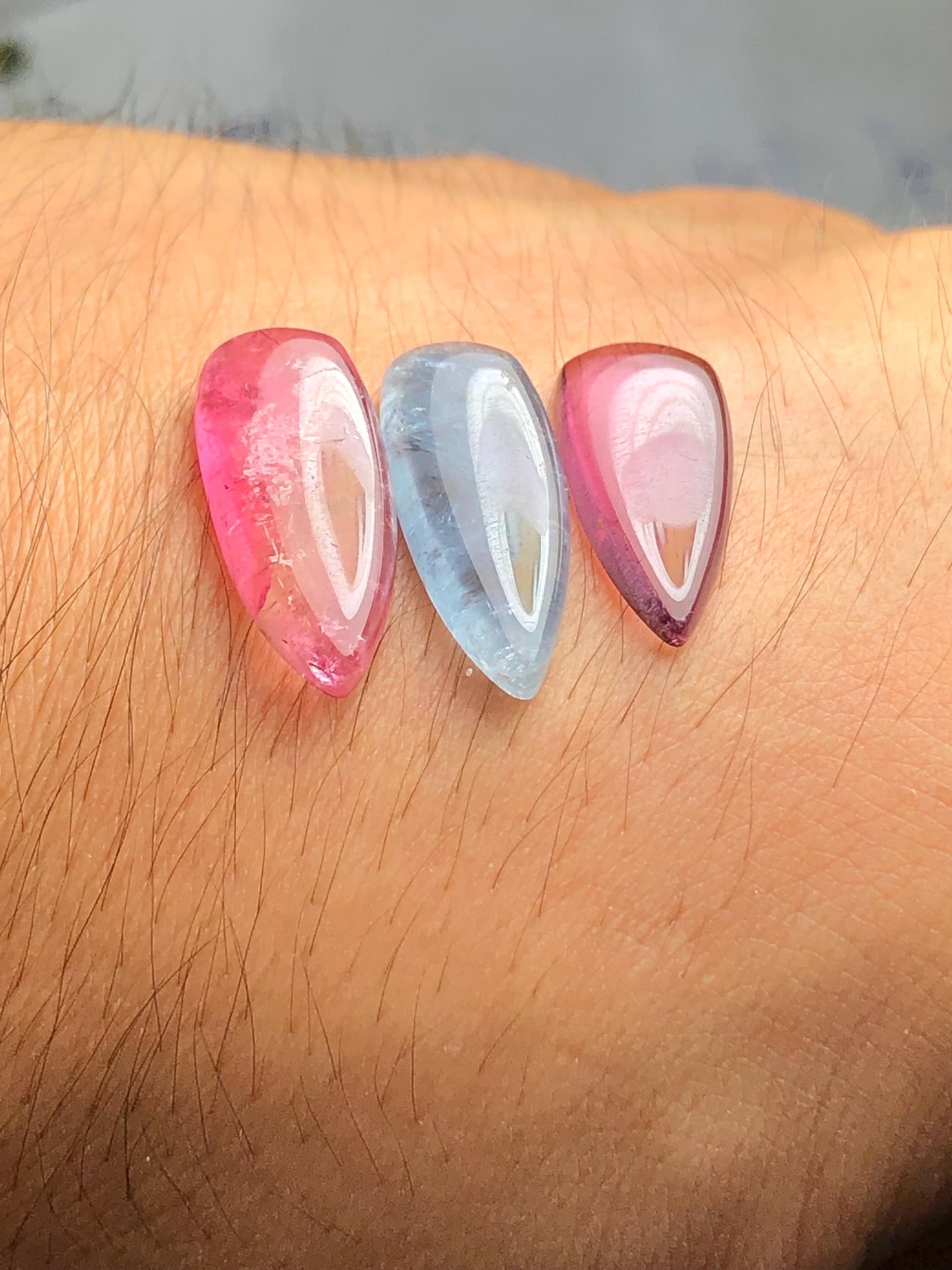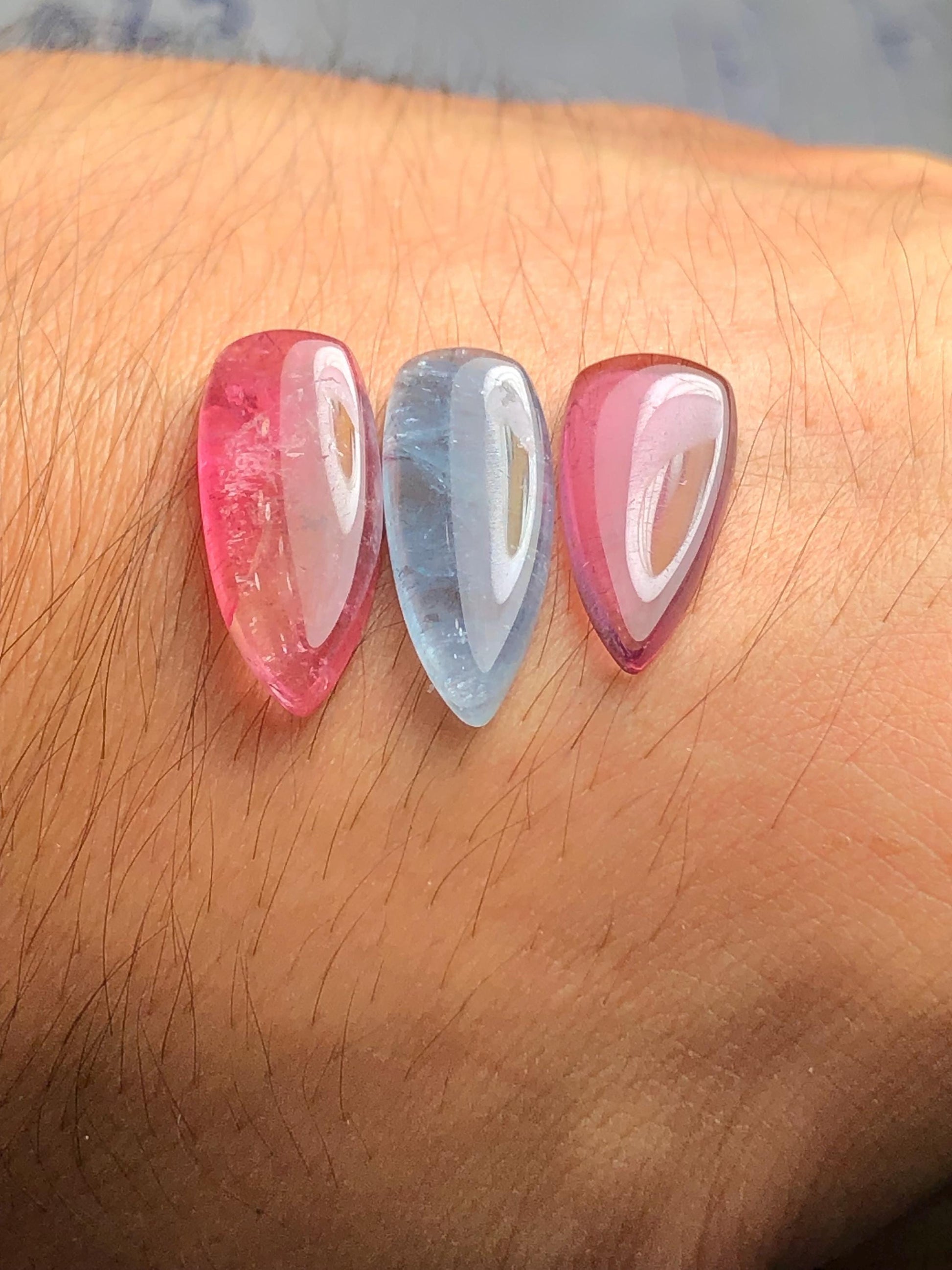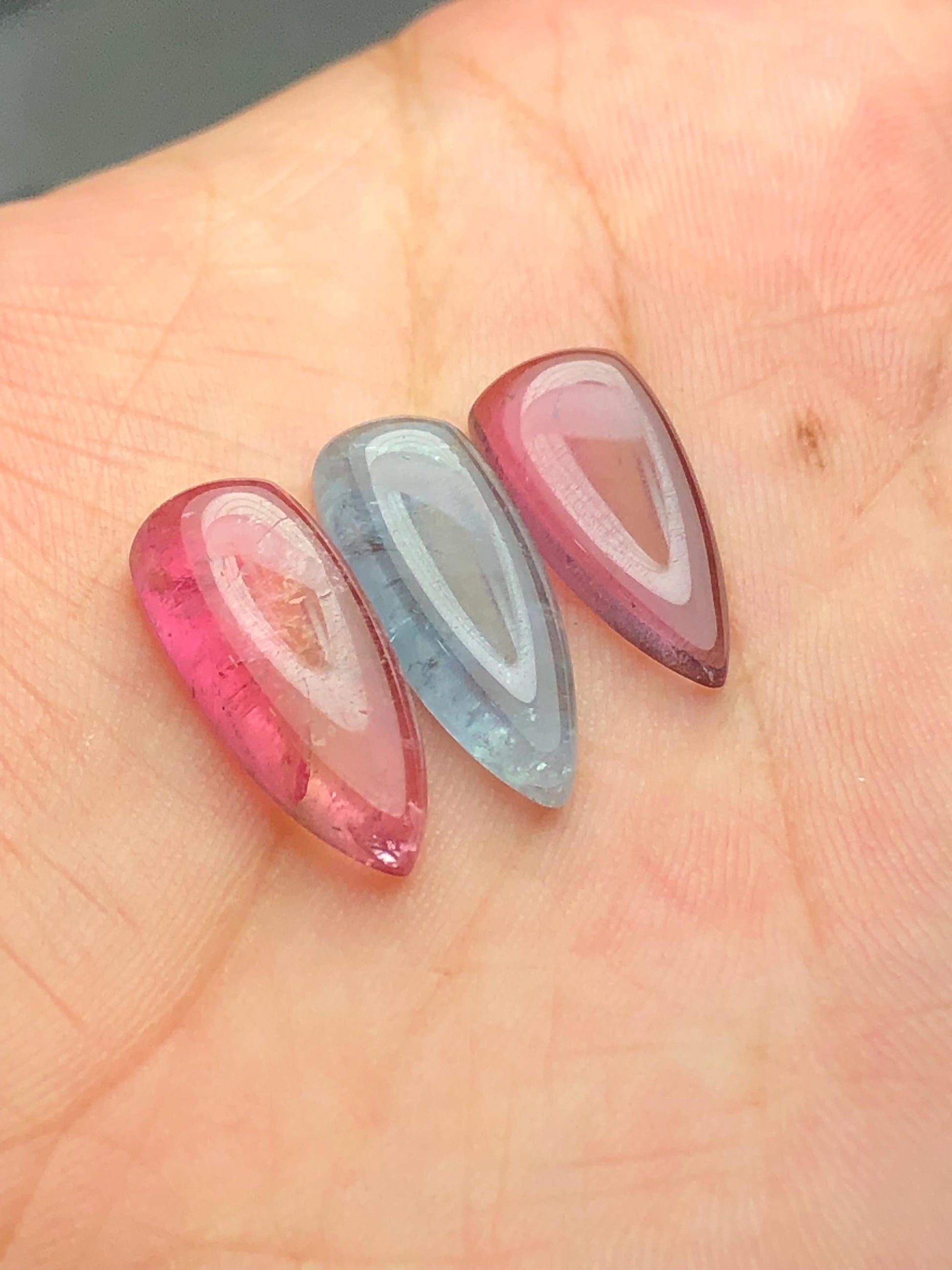 Pink Blue Tourmaline Cabochons 18 ct - Healing Stones for Creative Jewelry