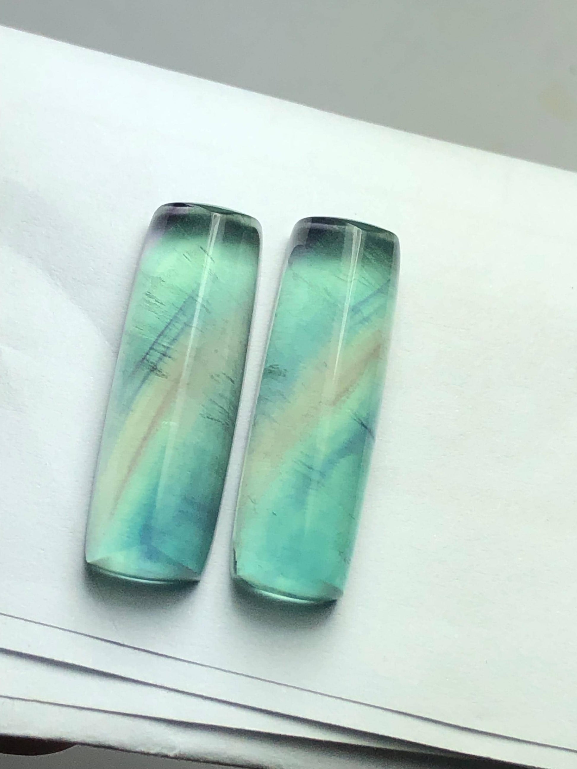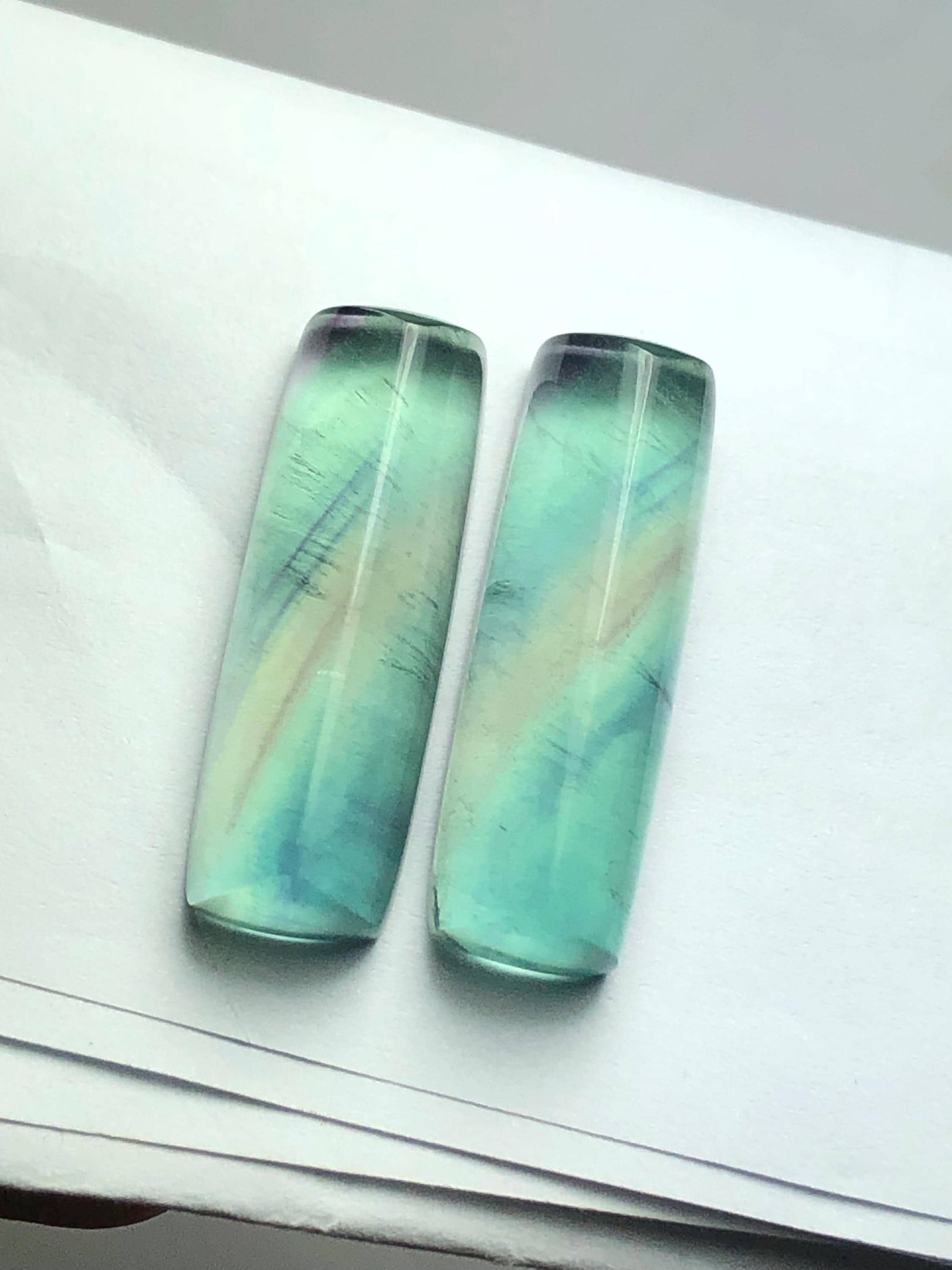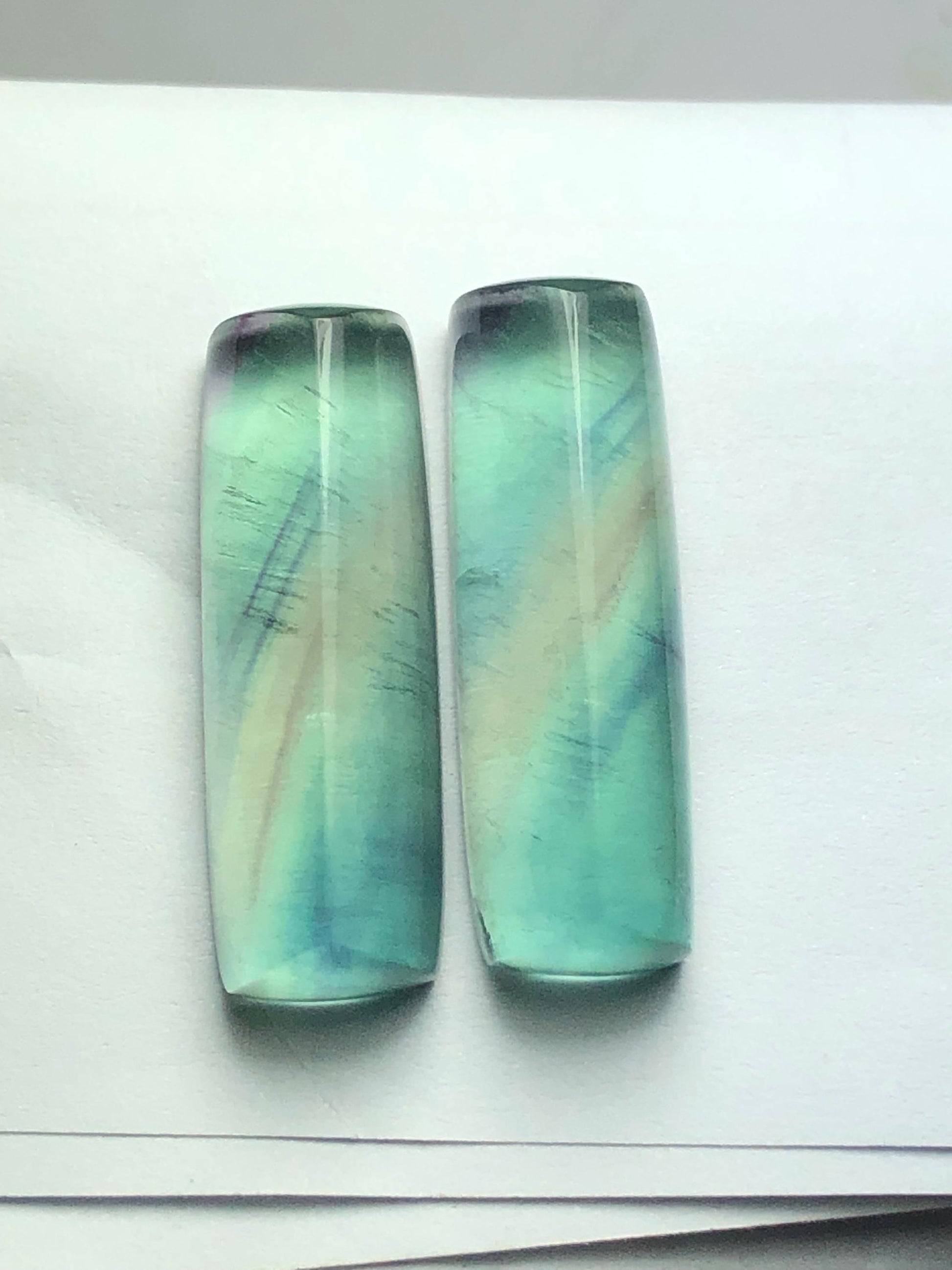 Rainbow Fluorite Cabochon Pair 57 ct - Meditation Energy Stones