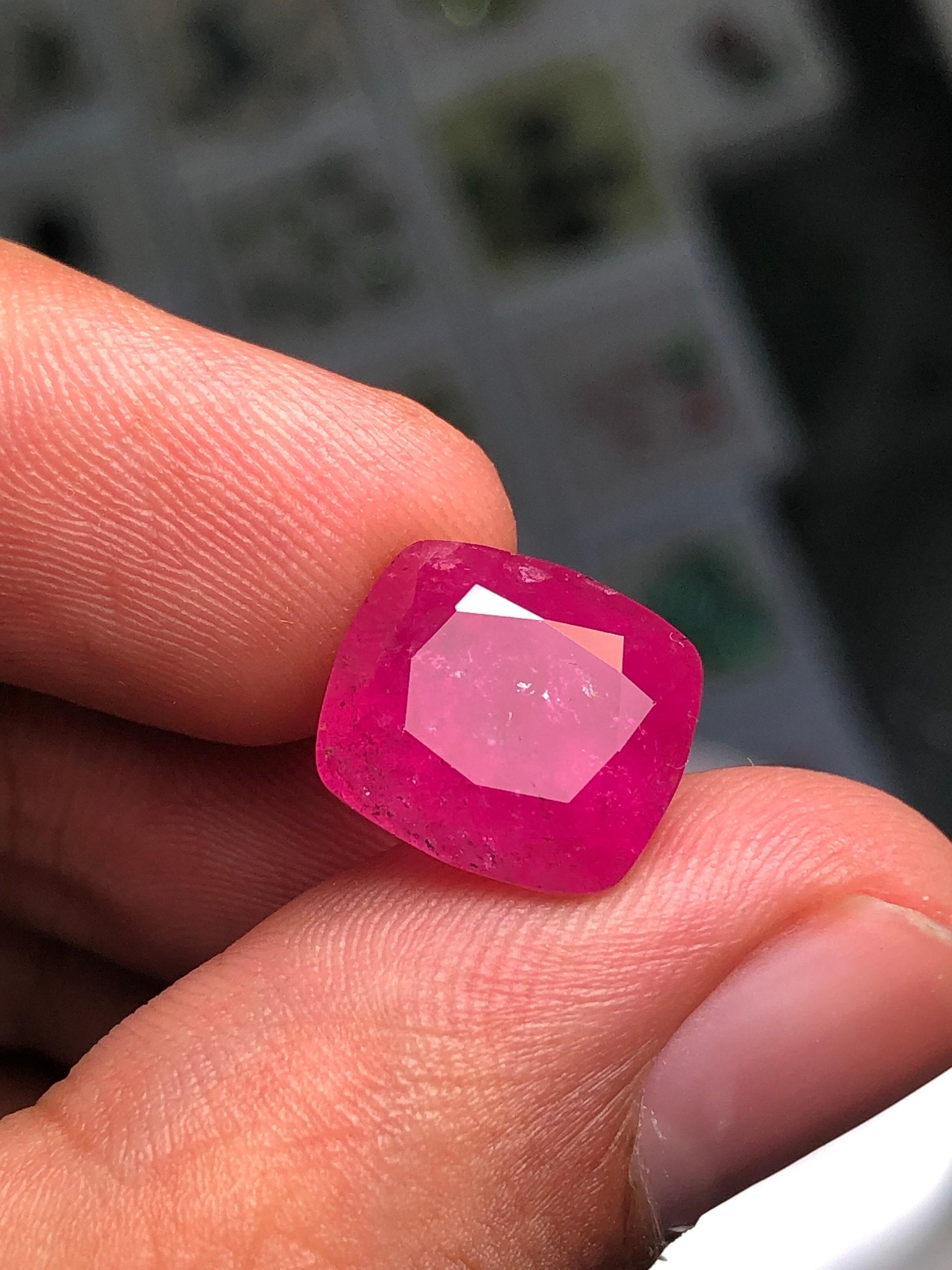 Weight:8 carat Dimension:12*11*8mm Shipping worldwide Origin Afghanistan kunar mines Certificate on demand Cushion cut Well cut and polished